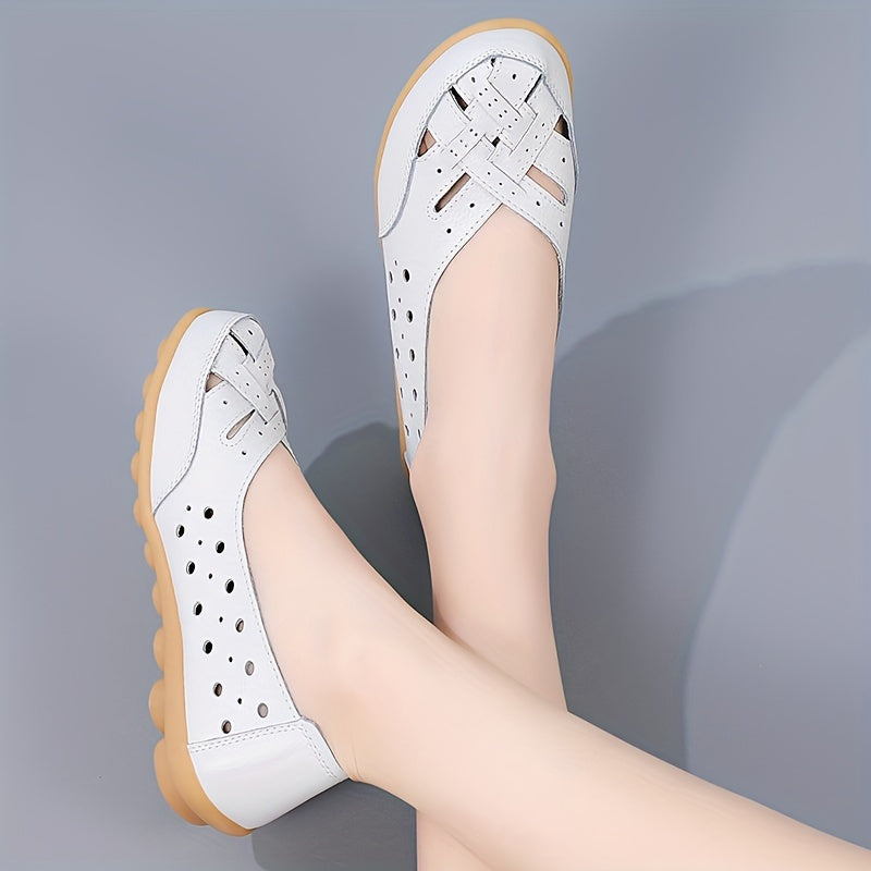 Atmungsaktivität trifft auf Stil: Die durchbrochenen Muster und Luftlöcher dieser Flats sorgen für eine ausgezeichnete Luftzirkulation, die Ihre Füße auch an heißen Tagen kühl hält. Das weiche Lederimitat schmiegt sich sanft an Ihre Füße an und bietet bequemen Halt ohne Druckstellen.