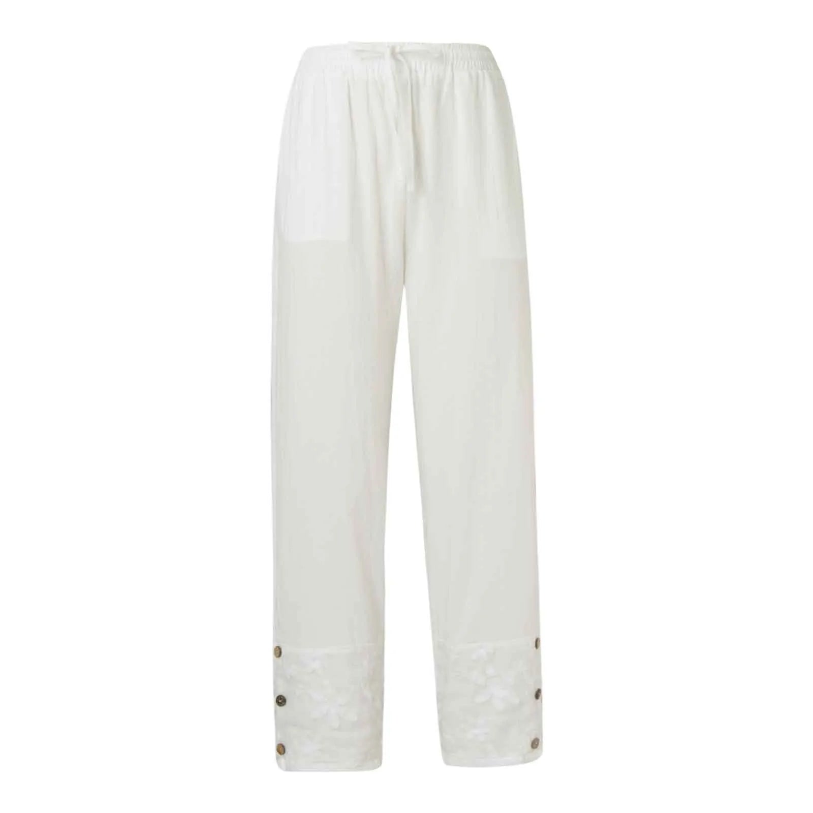 Luftiger Komfort: Diese Hose bietet eine perfekte Kombination aus Stil und Bequemlichkeit. Der elastische Bund mit Kordelzug sorgt für eine angenehme Passform, während der leichte, atmungsaktive Leinenstoff dafür sorgt, dass Sie sich den ganzen Tag über frisch und wohl fühlen. Die Knopfdetails am Beinabschluss verleihen der Hose eine besondere Note.