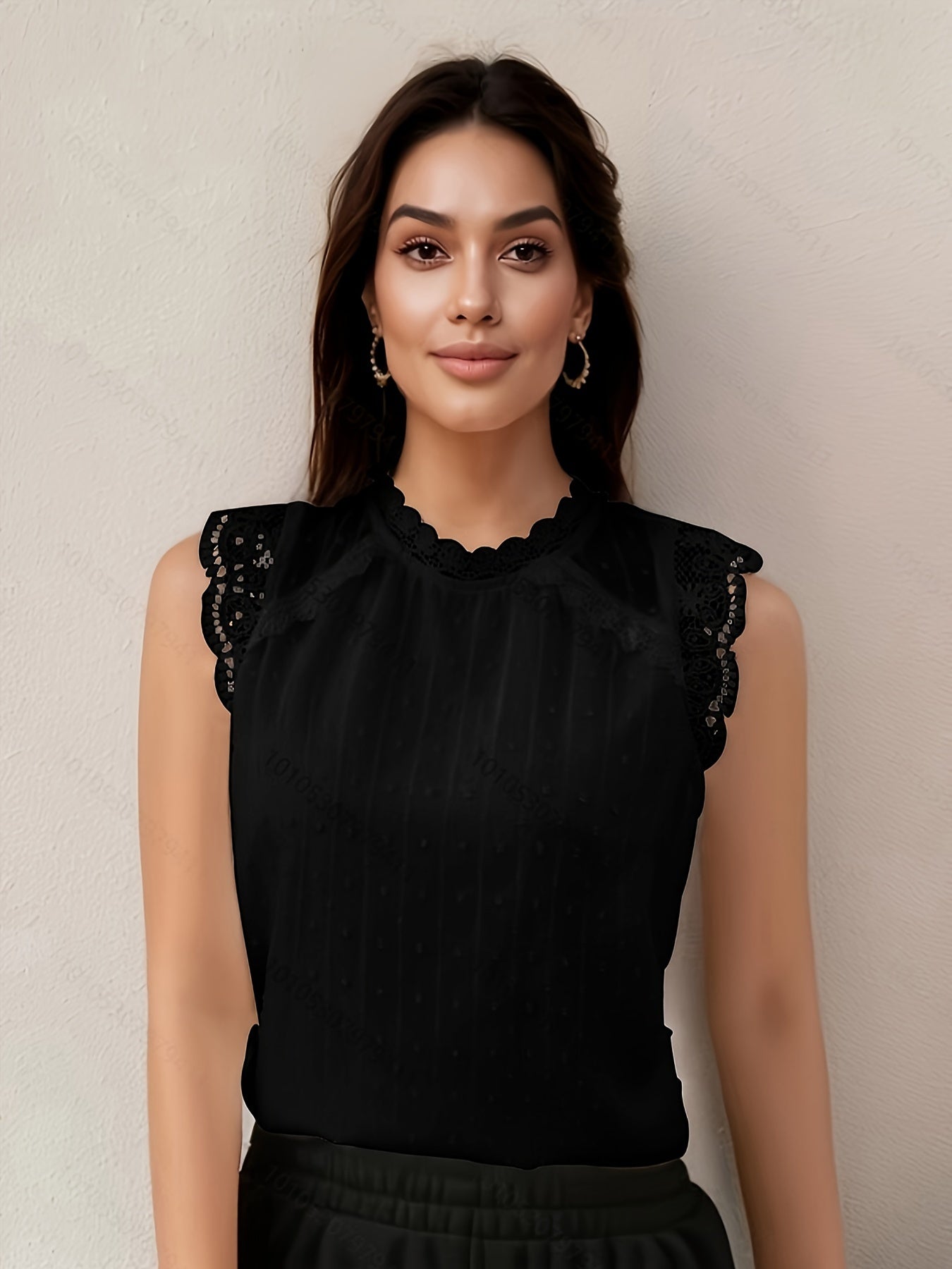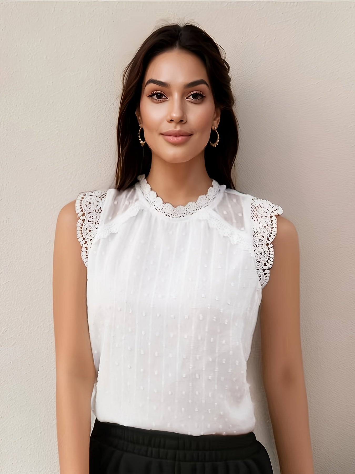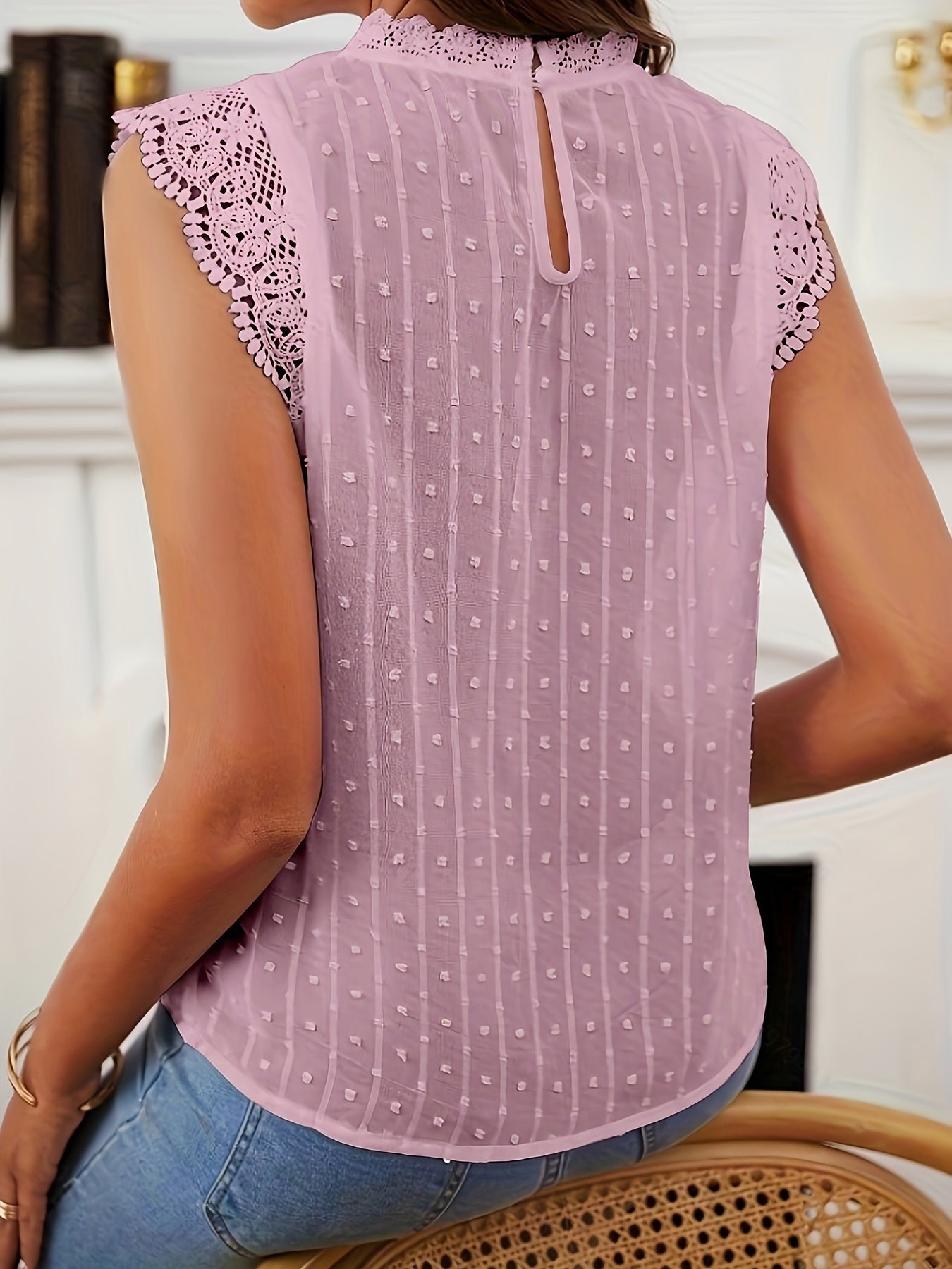 Hochwertige Verarbeitung und Komfort: Die Bluse besteht aus weichem, angenehmem Material, das sich sanft auf der Haut anfühlt und maximalen Komfort bietet. Die zarten Spitzendetails und die elegante Silhouette sorgen für eine stilvolle Erscheinung.