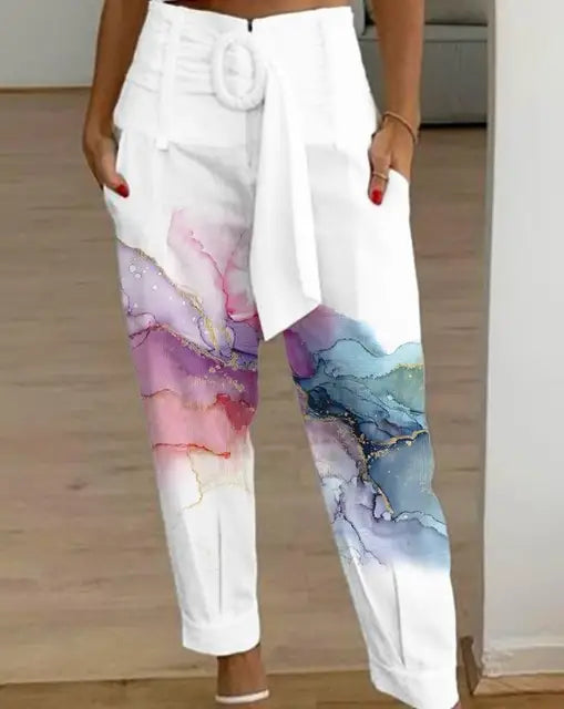 Hochmodischer Komfort: Mit ihrem elastischen Bund und dem dekorativen Gürtel kombiniert diese Hose modische Raffinesse und hohen Tragekomfort. Der leichte, atmungsaktive Stoff sorgt dafür, dass Sie sich den ganzen Tag über wohlfühlen, egal ob im Büro oder bei einem entspannten Nachmittag in der Stadt.
