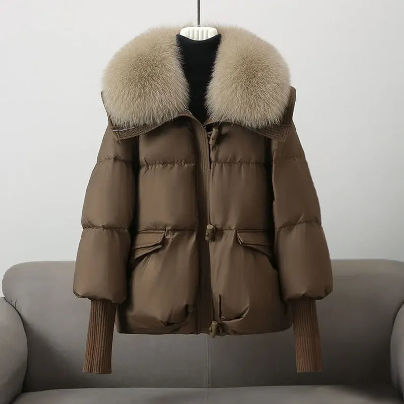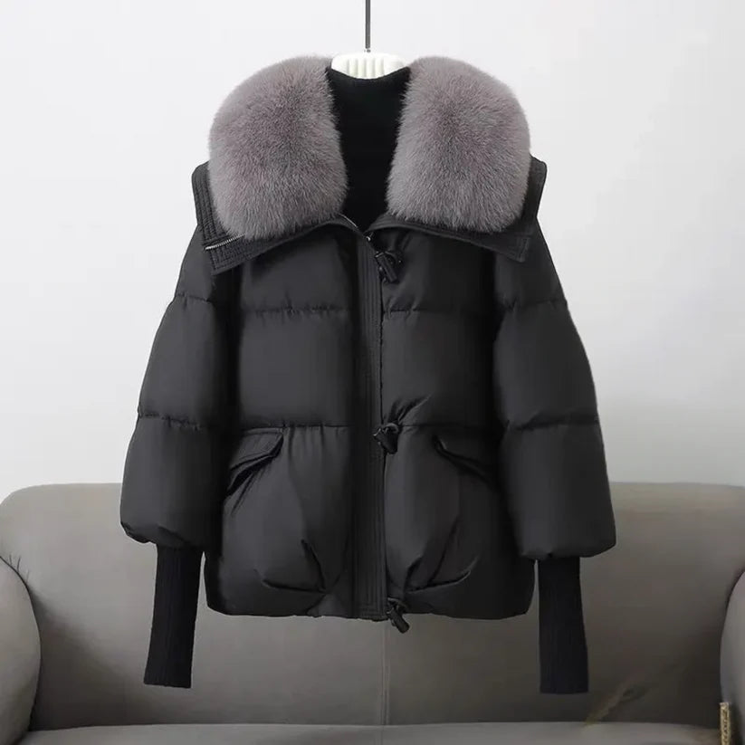 - Eleganter Fellkragen für zusätzlichen Luxus
