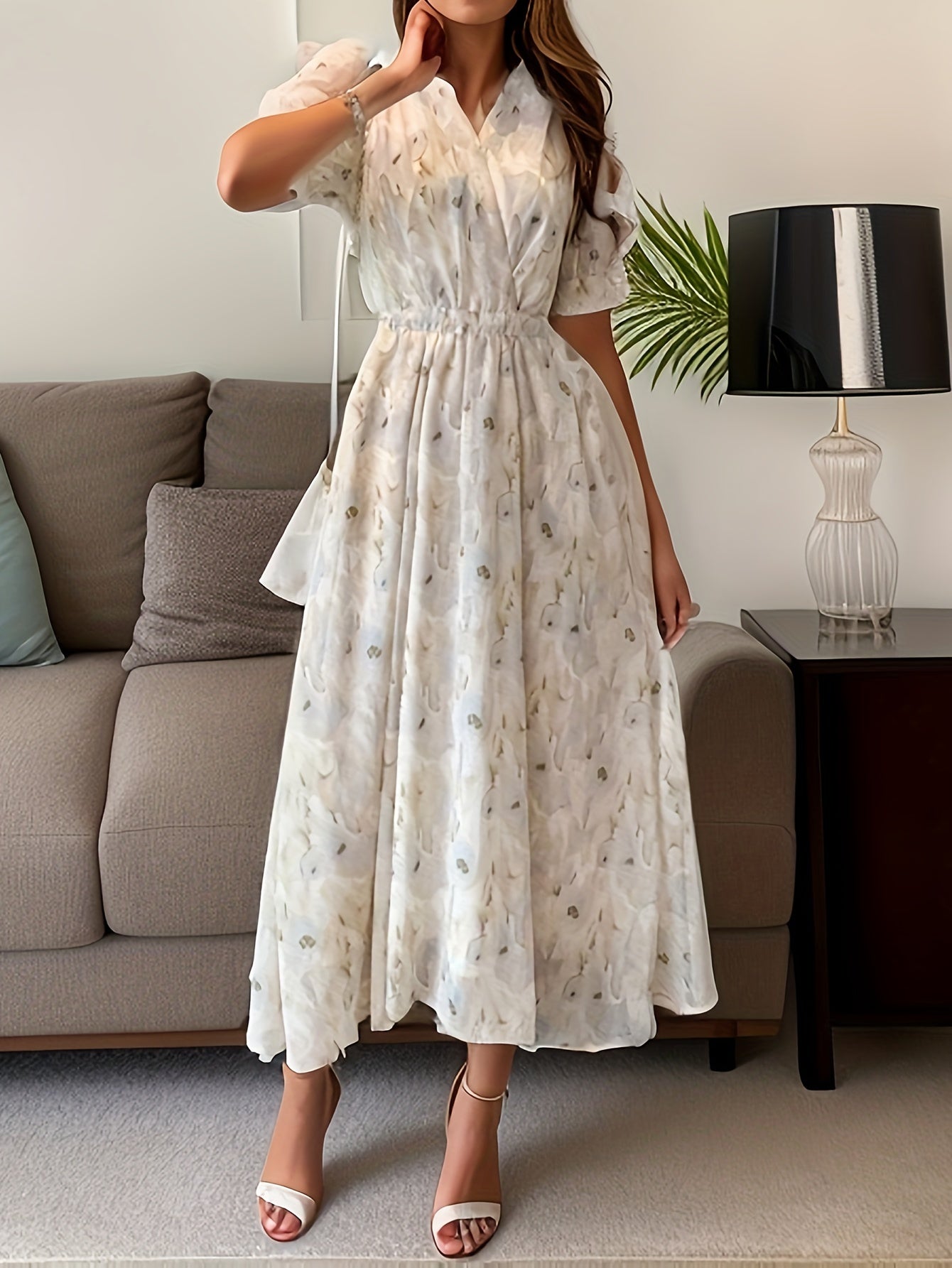 Fühlen Sie sich wunderbar: Dieses weiße Blumenkleid mit Puffärmeln ist die perfekte Wahl für jede Frau, die Eleganz und Komfort schätzt. Ideal für besondere Anlässe oder einfach, um sich besonders zu fühlen.