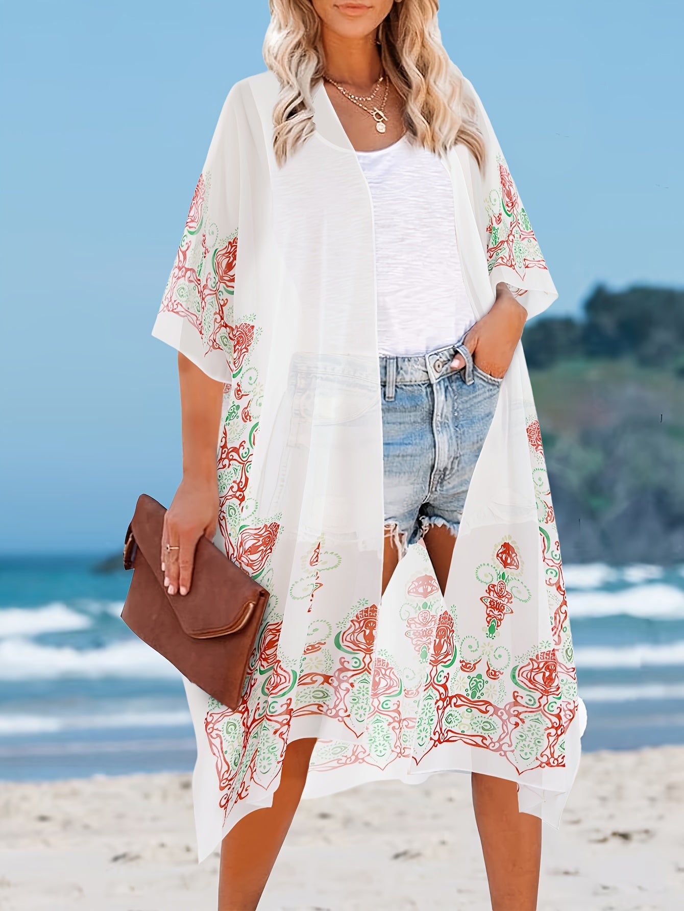 Ideal für vielseitige Anlässe: Ob am Strand, bei einem Stadtbummel oder einer Gartenparty – dieses Kimono passt zu jedem Anlass und lässt Sie immer gut aussehen. Kombinieren Sie es mit Shorts und einem T-Shirt für einen entspannten, boho-chicen Look.