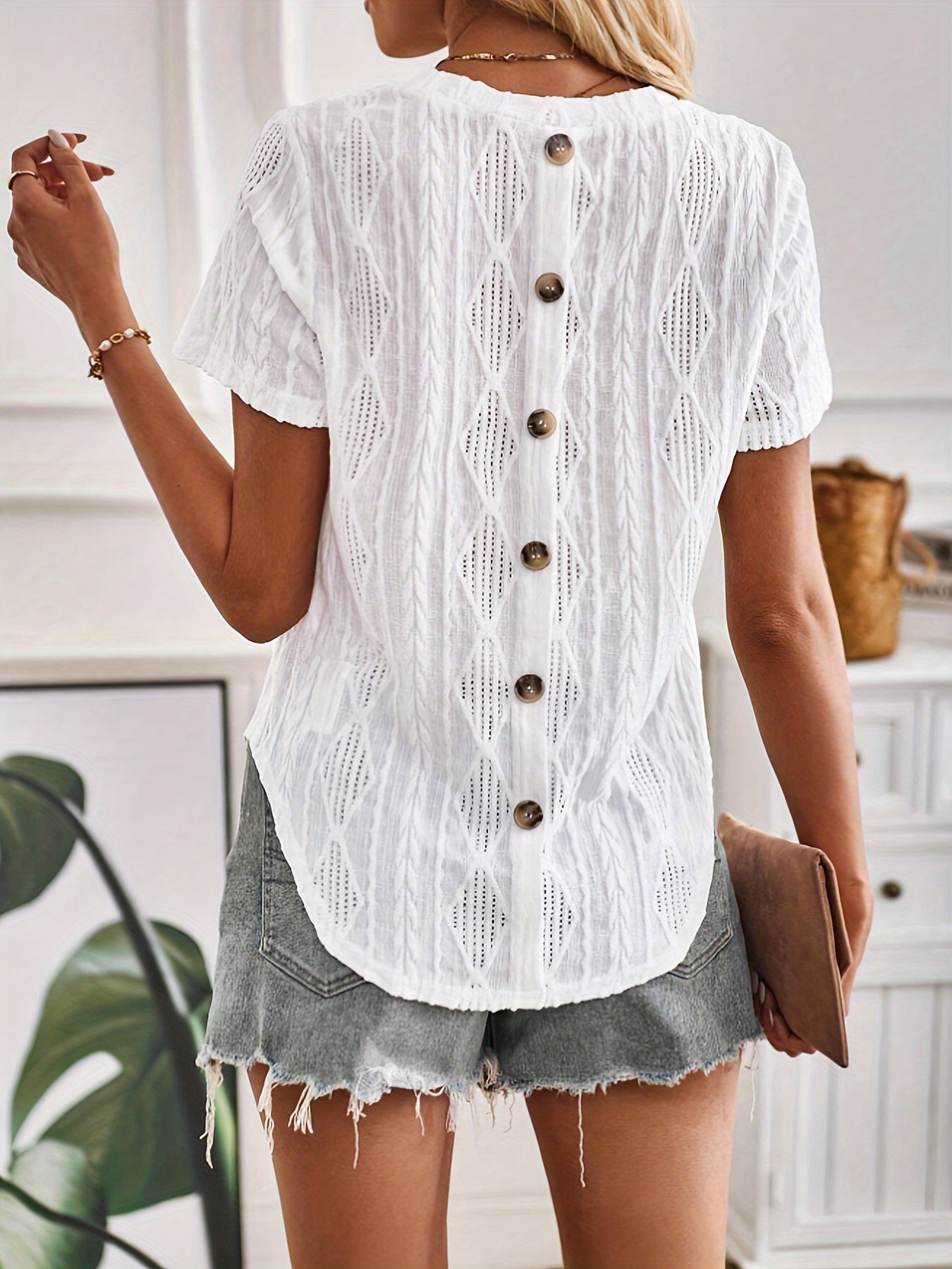 Leicht und atmungsaktiv: Der hochwertige Stoff sorgt für ein angenehmes Tragegefühl, selbst an warmen Tagen. Der taillierte Schnitt und die kurzen Ärmel bieten eine bequeme Passform, während das feine Strickmuster stilvolle Details hinzufügt.