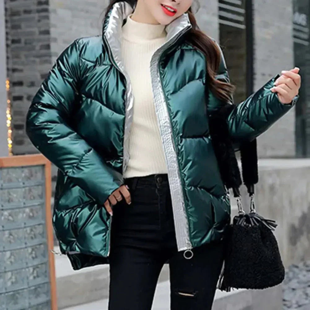Wintermode glänzende, leuchtende, stilvolle jacke