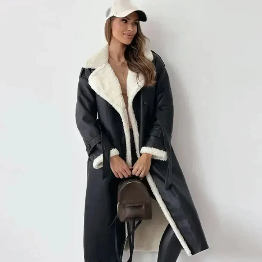 Klassischer, langer damenmantel mit fleecefutter und teddykragen – damen