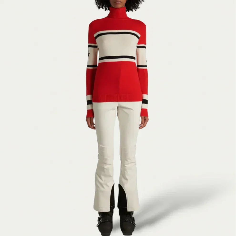 Verleihen Sie Ihrer Wintergarderobe mit diesem gestreiften Rollkragenpullover zeitlosen Charme und stilvolle Eleganz für jeden Tag. Das klassische Streifenmuster sorgt für einen frischen, modernen Look, während der kuschelige Rollkragen zusätzliche Wärme und Komfort bietet. Der Pullover ist weich, angenehm zu tragen und schmeichelt der Figur. Er eignet sich perfekt zum Kombinieren mit anderen Kleidungsstücken oder solo. Ideal für Freizeitaktivitäten oder entspannte Arbeitstage – dieser Pullover lässt sich mühelos mit Jeans, Hosen oder Röcken kombinieren.